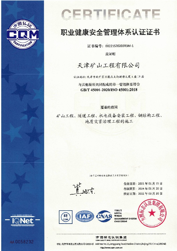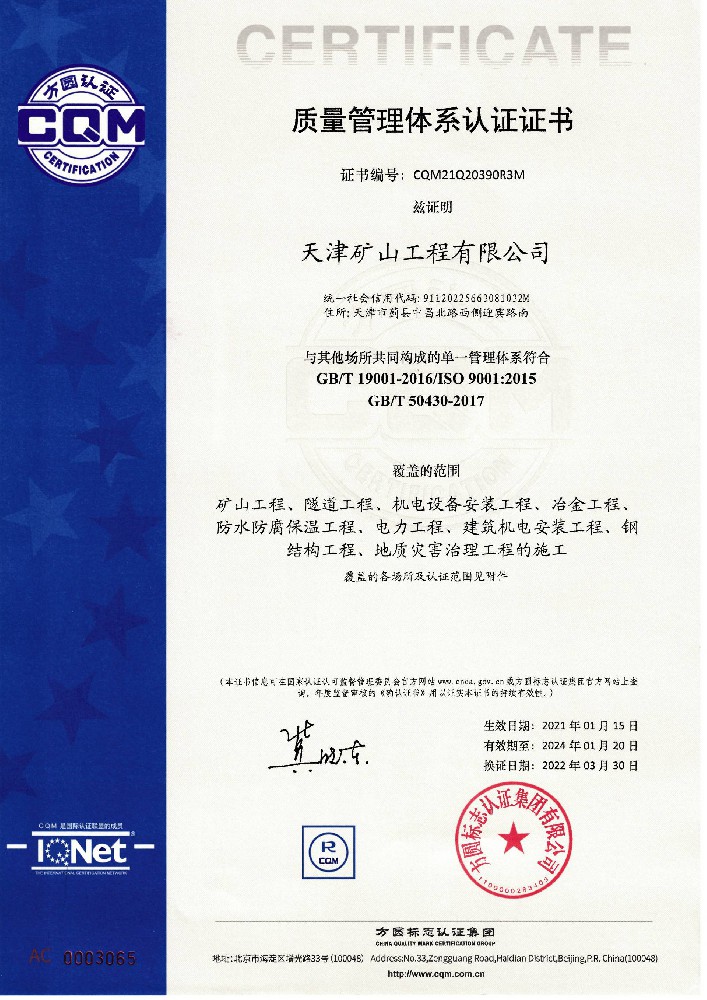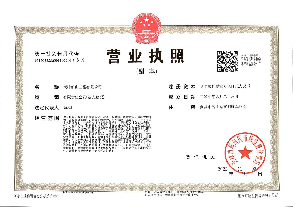 天津礦山工程有限公司(以下簡稱公司)始建于1965年,隸屬中國建材集團有限公司,是從事礦山總承包、礦山開采運營、礦山設計與咨詢、土石方爆破、生態(tài)恢復治理、鋼結構制作安裝、機電設備安裝以及工程測量的專業(yè)化礦山施工企業(yè)和礦山開采運營總承包服務商。具備礦山總承包和爆破雙一級資質(zhì)。 公司始建于1965年,總部位于天津市···